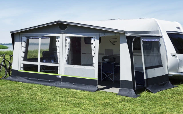 Das ideale Saisonvorzelt, das auch ganzjährig genutzt werden kann, 5-tlg. Zelttiefe: 240 cm. Vordach: ca. 20 cm. Kederschiene: 7 mm